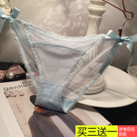 日系甜美风少女侧系带网纱性感内裤女纯棉档蕾丝边小波点三角裤