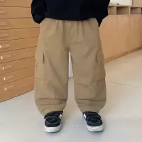 童酷男童秋款织里童装纯色百搭中小童工装裤立体口袋儿童裤子