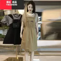 YIBUSHENG时尚休闲条纹裙子女季2024新款背带裙大码女装小个子中长连衣裙