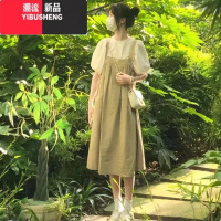 YIBUSHENG绿色背带裙女季小个子工装两件套装初中生学生连衣裙子森系装