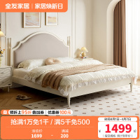 全友家居法式软包床屏小户型卧室家具实木床脚高脚床双人大床