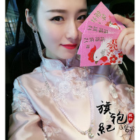 刘美人同款秋冬装改良版旗袍连衣裙夹棉粉色珠片绣花长款小袄宴会