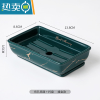 敬平北欧轻奢风创意陶瓷香皂碟肥皂盒置物架沥水浴室卫生间家用小皂盒 长方描金墨绿有孔+托盘皂碟