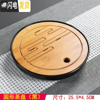 三维工匠功夫茶具竹茶盘竹制茶海茶台储水排水式茶托大号小号托盘 圆形茶盘(黑)25.5*4.5CM