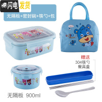 三维工匠小学生304不锈钢饭盒带盖防摔防漏长方形卡当盒学生分格餐盒 蓝色饭盒+密封碗+包[无隔板]赠304不锈钢筷勺