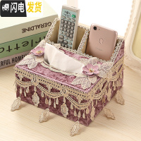 三维工匠欧式多功能纸巾盒客厅抽纸盒遥控器收纳盒布艺蕾丝桌面纸抽盒家用 流年-紫色