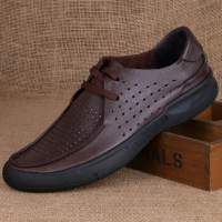 夏季镂空凉鞋系带头层牛皮透气打孔洞洞鞋厚底商务休闲皮鞋男