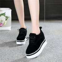 松糕底小皮鞋女磨砂厚底英伦单鞋圆头布洛克单鞋学院风系带牛津鞋