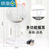敬平ins网红台式化妆镜学生宿舍桌面便携大号梳妆镜少女卧室公主镜子 白色猫耳-两用收纳便携式用镜