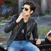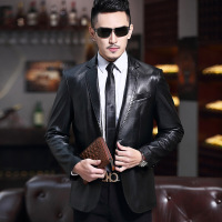 海宁秋季韩版修身新款青年男士真皮皮衣西装男装休闲商务皮外套黑色