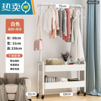 敬平晾衣架落地家用卧室收纳整理器移动多功能挂衣帽架352 升级加粗铁筐款 珍珠白衣帽架二层 63cm 中