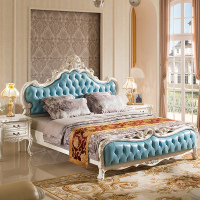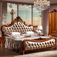 永旭家具 欧式古典客厅进口全实木双人真皮结婚床组合套装精湛雕刻带软靠橡木床9901 实木床
