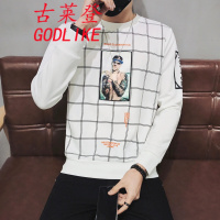 古莱登新款男士春季外套青少年学生潮韩版修身春秋季圆领格子套头卫衣男