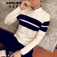 丹杰仕 古莱登新款秋季韩版男士毛衣假两件外套针织衫假领衬衫领学生长袖套头线衣秋冬时尚拼色加绒毛衣