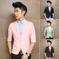 青年外套韩版修身男装西服七分袖上衣夏季潮男士休闲西装