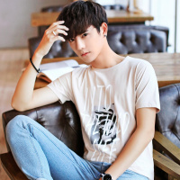 2018新款短袖T恤男韩版圆领夏季上衣修身印花男士打底衫半袖潮流CYMMEDL