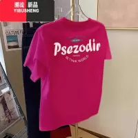 YIBUSHENG欧货大版玫红色圆领正肩短袖t恤女2024季新款宽松半袖体恤上衣