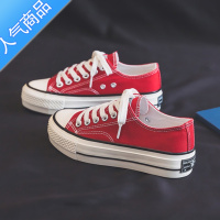 SUNTEK红色帆布鞋女2023新款夏季薄款透气小众百搭厚底增高休闲板鞋