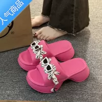 SUNTEK玫红色厚底拖鞋女夏季外穿2023新款松糕增高小个子网红一字拖