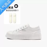 SUNTEK白色女款夏2023增高透气薄款厚底饼干帆布百搭松糕小白板鞋子