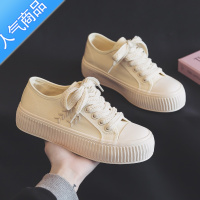 SUNTEK2023夏季新款小白鞋女厚底松糕白色帆布鞋增高学生韩版百搭布鞋