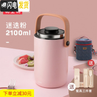 三维工匠上班族304不锈钢保温饭盒真空超长便携餐盒多层学生便当桶 304提锅2.6+橘粉包+餐具