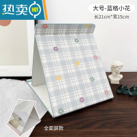 敬平镜子化妆镜女台式便携家用大号可立折叠镜学生宿舍桌面可爱梳妆镜 蓝格小花-大号便携式用镜