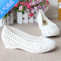 SUNTEK夏季坡跟白色护士鞋凉鞋女鞋塑料鸟巢镂空孕妇妈妈鞋工装鞋洞洞鞋