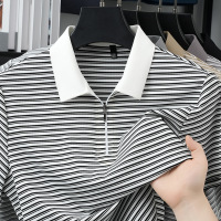 夏季新款男士条纹短袖Polo衫休闲轻商务翻领舒适透气轻薄男装
