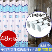 防水防霉不透浴室浴帘套装免打孔可伸缩卫生间浴帘杆+浴帘送挂钩