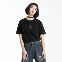 珂依舍2018春夏装新款2018夏款宽松个性数字印花短袖T女款