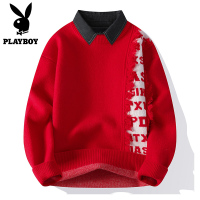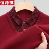 恒源祥中年毛衣男秋冬季衬衫领假两件套针织打底衫宽松休闲爸爸装