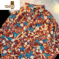YANXU港风vintage红色花衬衫男女复古夏威夷痞帅宽松情侣长袖衬衣外套