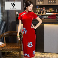Kruidvat 奈琴尔民族风刺绣绣花金丝绒旗袍连衣裙 长款红色中式结婚礼服AQ