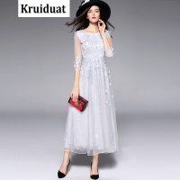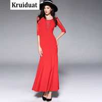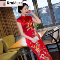 Kruidvat 奈琴尔 2016春夏新款红色长款真丝绣花 旗袍连衣裙B017