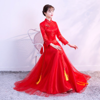 红色敬酒服新娘秋冬季中式婚纱礼服长款长袖秀禾服2018新款结婚女