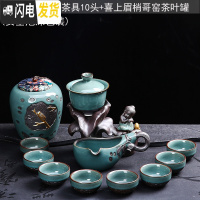 三维工匠整套懒人泡茶全自动陶瓷功夫复古茶具套装家用哥窑冲茶喝茶杯 16哥窑富贵10头+茶叶罐