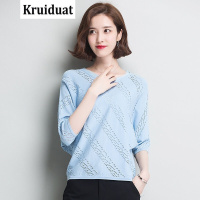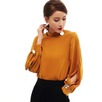 秋季新款名媛女装精品优雅长袖宽松圆领雪纺衫蝙蝠袖上衣女