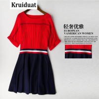 Kruidvat欧美2017夏季织带拼接蝙蝠袖真丝连衣裙五分袖修身BT红色