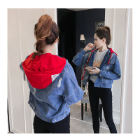 秋季韩版新款宽松百搭连帽蝙蝠袖上衣长袖单排扣休闲牛仔外套女