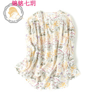 锦铭七玥2018春夏碎花蝙蝠袖新款真丝衬衫女 大码女装桑蚕丝上衣中长款