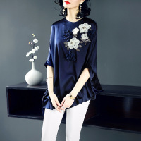 默蒂梵2017夏装中年妈妈装蝙蝠袖真丝T恤中老年女装桑蚕丝加肥加大上衣