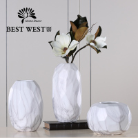 欧式大理石纹陶瓷花瓶干花插花器餐桌装饰客厅花瓶仿真花套装摆件