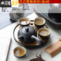 三维工匠黑陶瓷功夫茶具家用简约干泡茶盘日式小旅行便携茶杯套装 8黑陶侧把4杯20cm日月