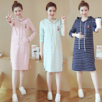 孕妇装2017秋装长袖新款上衣韩版卫衣条纹孕妇装中长款孕妇连衣裙