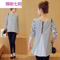 锦铭七玥夏季新款时尚孕妇T恤上衣 条纹孕妇装宽松大码T恤衬衫