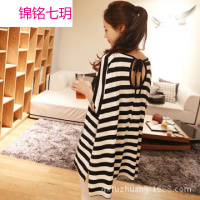 锦铭七玥厂价直销 夏季孕妇裙 纯棉韩版休闲条纹孕妇裙 孕妇装外出服
