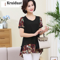 Kruidvat17夏新款妈妈雪纺大码显瘦圆领短袖印花Z010