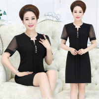 妈妈装韩版雪纺连衣裙子胖中年妇女短袖夏季长裙中老年女装夏装加肥加大码宽松上衣秋装妈妈雪纺上衣中长款