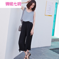 锦铭七玥时尚夏季孕妇装气质雪纺孕妇阔腿裤百褶托腹裤袖雪纺上衣